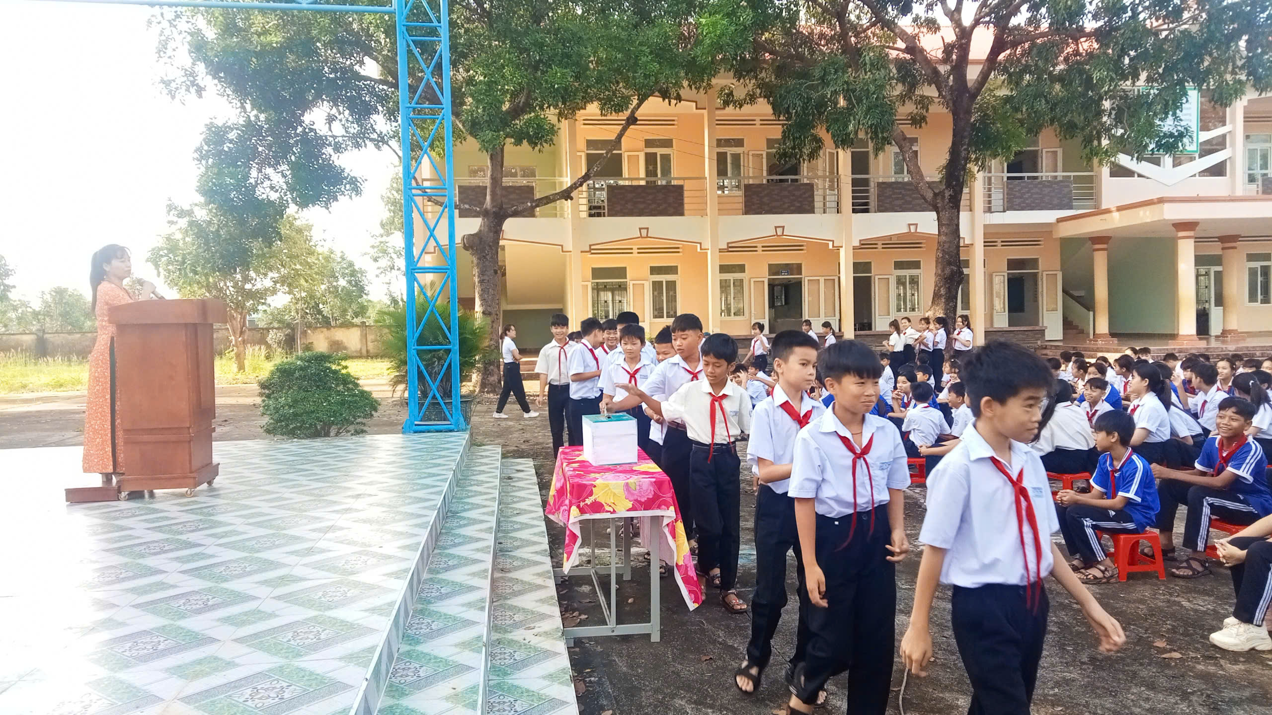 Trong phần phát động, cô Võ Thị Mỹ Linh– Tổng phụ trách Liên đội – đã xúc động chia sẻ:
